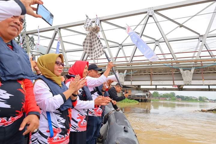 Walikota Tanjungbalai H Waris Tholib melakukan pelepasan lomba Perahu Naga bersama para unsur Forkopimda di garis star Jembatan Titi Silau/Silo.