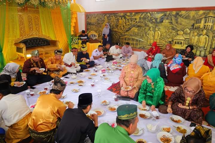 Acara Prosesi Kesultanan dan Makan Bajambar yang merupakan salah satu agenda kegiatan Peringatan Hari Jadi Kota Tanjungbalai ke-403 tahun 2023, di Balai Ujung Tanjung, Rabu (27/12/2023) siang.