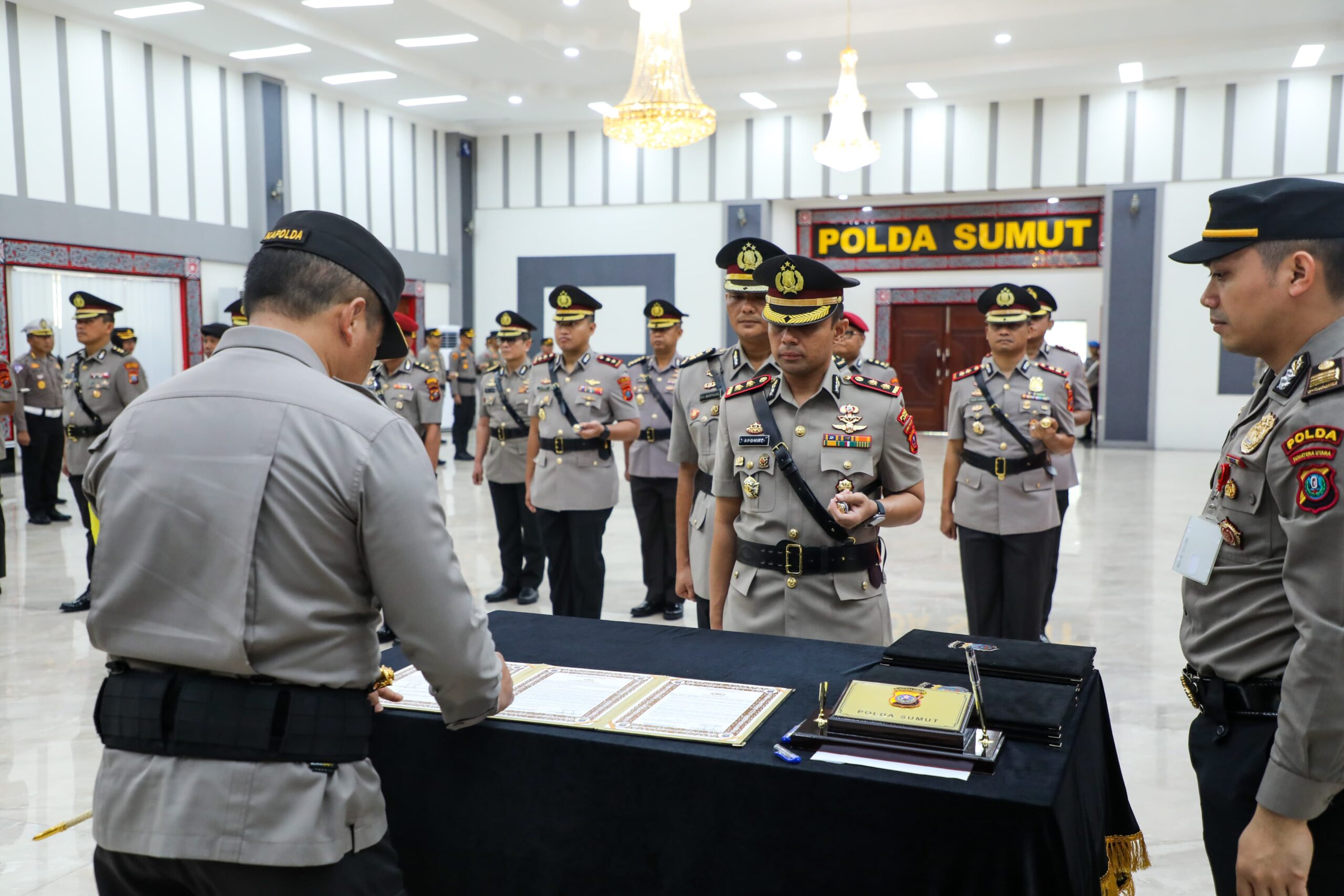“Kepada pejabat yang lama terina kasih atas pengabdian, dedikasi, prestasi dan capaian kinerja yang telah diberikan selama bertugas di Polda Sumut. Selamat bertugas di tempat yang baru, semoga diberikan kelancaran dan kesuksesan dalam menjalankan amanah,” ucapnya.
