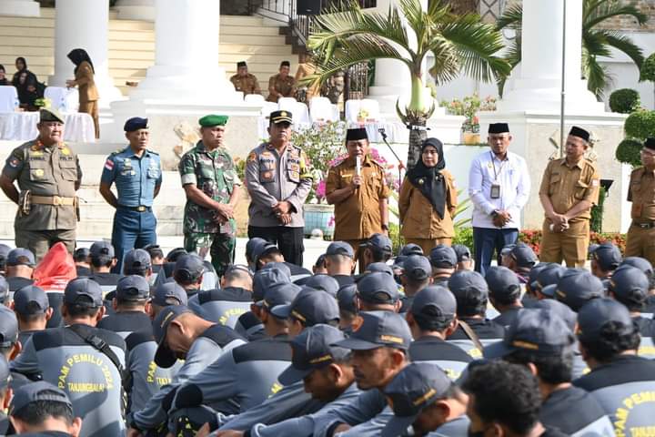 Pemerintah Kota Tanjungbalai menggelar Apel Kesiapsiagaan Pasukan Perlindungan Masyarakat (Linmas) Pengamanan Pemilu Tahun 2024, di Halaman Kantor Walikota, Senin (12/2/2024) pagi.