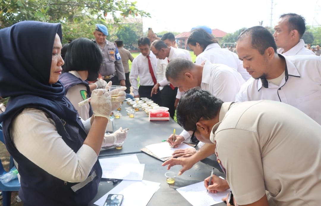 Pelaksanaan tes urin dilakukan kepada sejumlah personel yang hadir dalam apel pagi tersebut