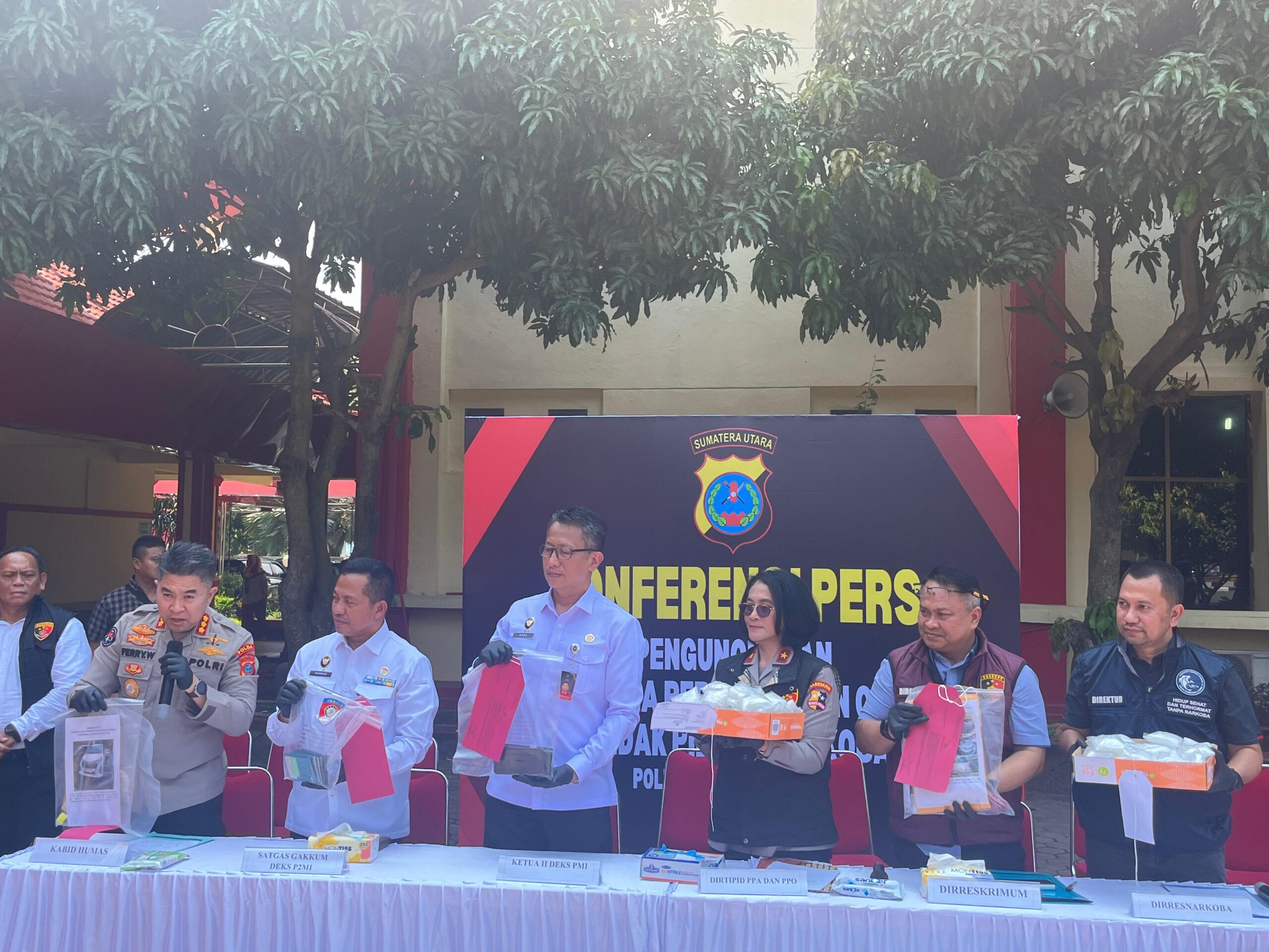 Lidikcyber.com, Medan – Polda Sumatera Utara bersama Kementerian Koordinator Bidang Politik, Hukum, dan Keamanan RI serta Bareskrim Polri menggelar konferensi pers pengungkapan dua kejahatan serius yang marak terjadi: Tindak Pidana Perdagangan Orang (TPPO) dan peredaran narkoba yang memanfaatkan modus pengiriman Pekerja Migran Indonesia (PMI) ilegal, Kamis (19/06/25).