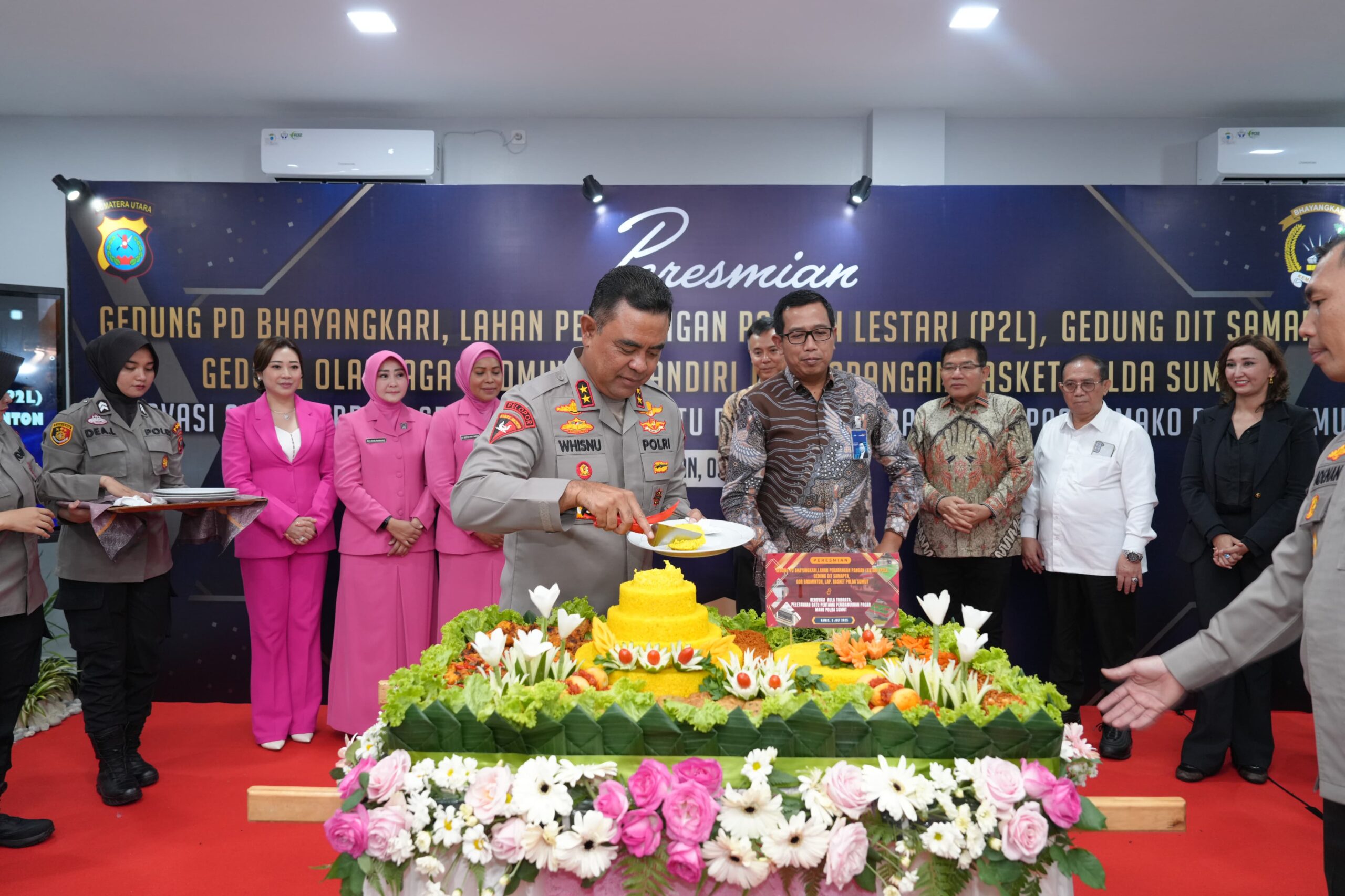 Hal itu ditandai dengan peresmian empat fasilitas baru, yakni Gedung Pengurus Daerah Bhayangkari, Gedung Direktorat Samapta, Gedung Olahraga (GOR) Bulutangkis, serta Lapangan Basket di lingkungan Mapolda Sumut, Rabu (3/7).