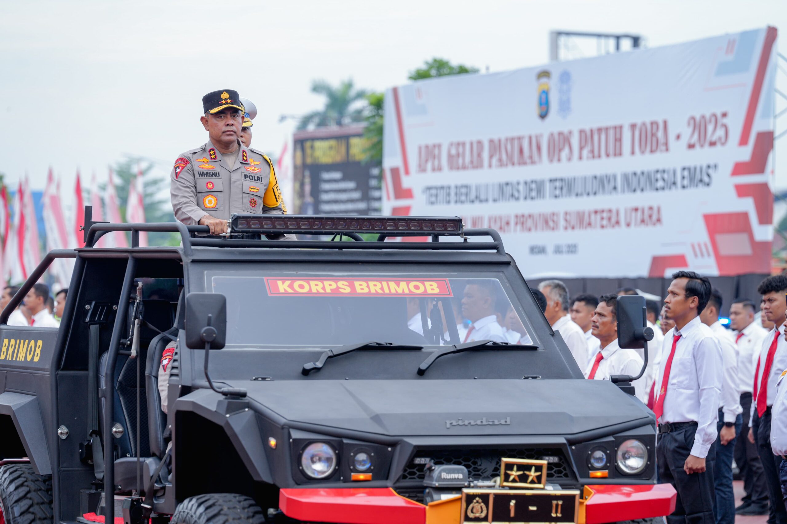 Lidikcyber.com, Medan – Kepala Kepolisian Daerah Sumatera Utara, Irjen Pol Whisnu Hermawan F., S.I.K., M.H., memimpin langsung Apel Gelar Pasukan Operasi Kepolisian Kewilayahan “Patuh Toba 2025” yang digelar di Lapangan KS Tubun Mapolda Sumut, Senin (14/7/2025).