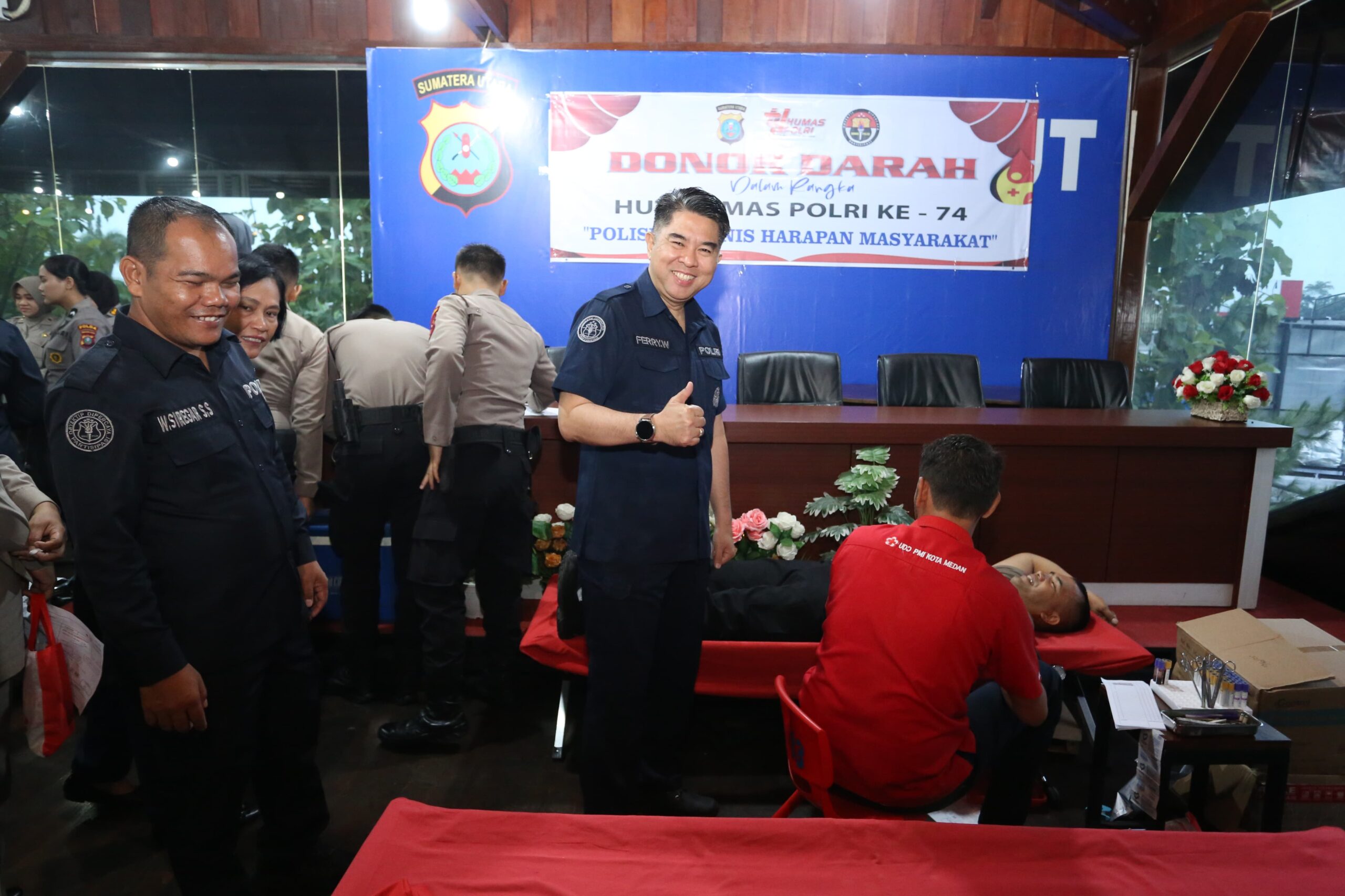 Dalam sambutannya, Kabid Humas Polda Sumut Kombes Pol Dr. Ferry Walintukan menyampaikan bahwa kegiatan donor darah ini merupakan bagian dari komitmen Humas Polri untuk terus hadir dan berkontribusi bagi masyarakat.
