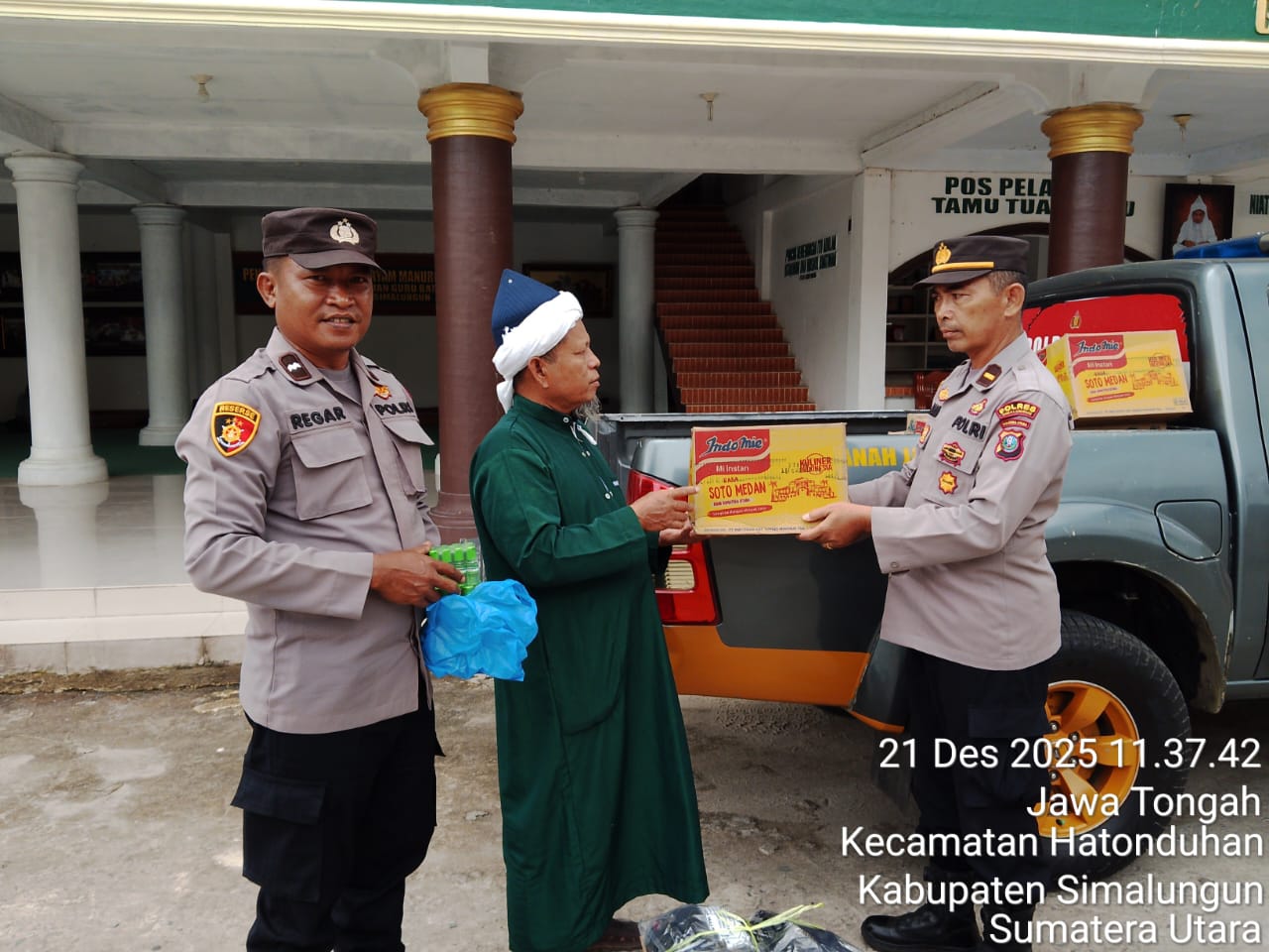 Lidikcyber.com, Simalungun – Kepedulian Polri terhadap korban bencana alam kembali terwujud nyata. Polsek Tanah Jawa Polres Simalungun menyalurkan bantuan kemanusiaan kepada korban bencana melalui Persulukan Tuan Guru Batak di Jawa Tengah, Kecamatan Tanah Jawa, Kabupaten Simalungun, pada Minggu (21/12/2025) siang.