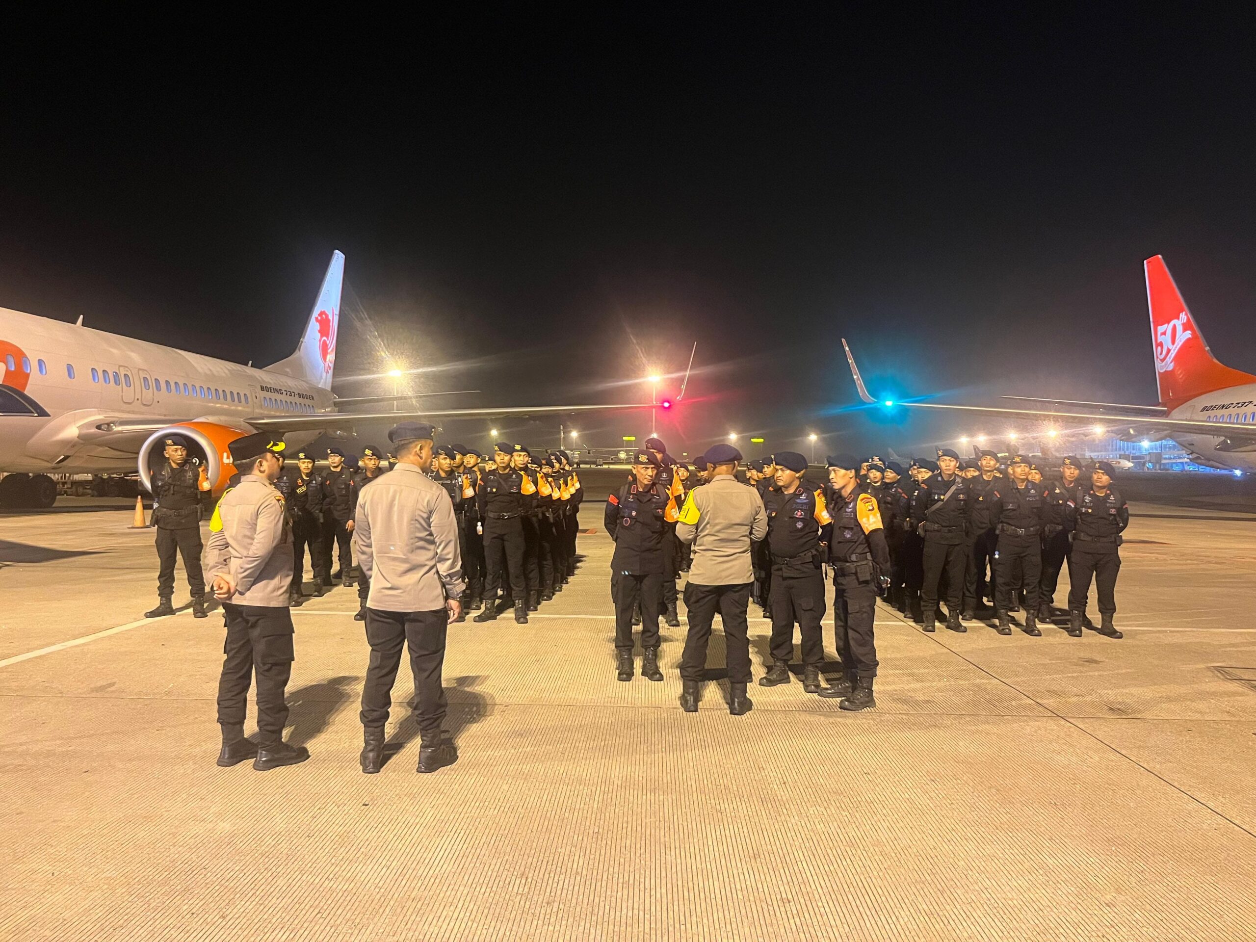 Adapun pasukan BKO yang tiba di Bandara Kualanamu terdiri dari lima kompi Brimob, masing-masing berjumlah 100 personel. Kompi 2 Brimob Polda Sulawesi Selatan menjadi pasukan pertama yang mendarat pada pukul 19.40 WIB, disusul Kompi 1 Brimob Polda Kalimantan Timur pada pukul 20.40 WIB. Selanjutnya, Kompi 2 Brimob Polda Banten tiba pada pukul 22.15 WIB, Kompi 1 Brimob Polda DIY pada pukul 23.15 WIB, dan terakhir Kompi 3 Brimob Polda NTB yang mendarat pada pukul 23.50 WIB.