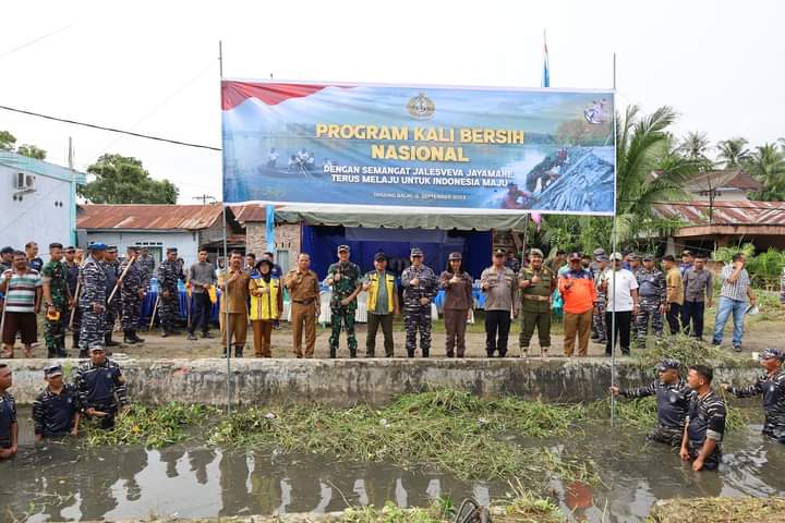 Walikota Tanjungbalai H Waris Tholib bersama para Pejabat Pemerintah Kota Tanjungbalai mengikuti Vicon Secara Serentak Program Kali Bersih Nasional sekaligus melakukan pembersihan di sungai Bandar Sipayang, Jalan Kartini, Selasa (5/9/2023) pagi.