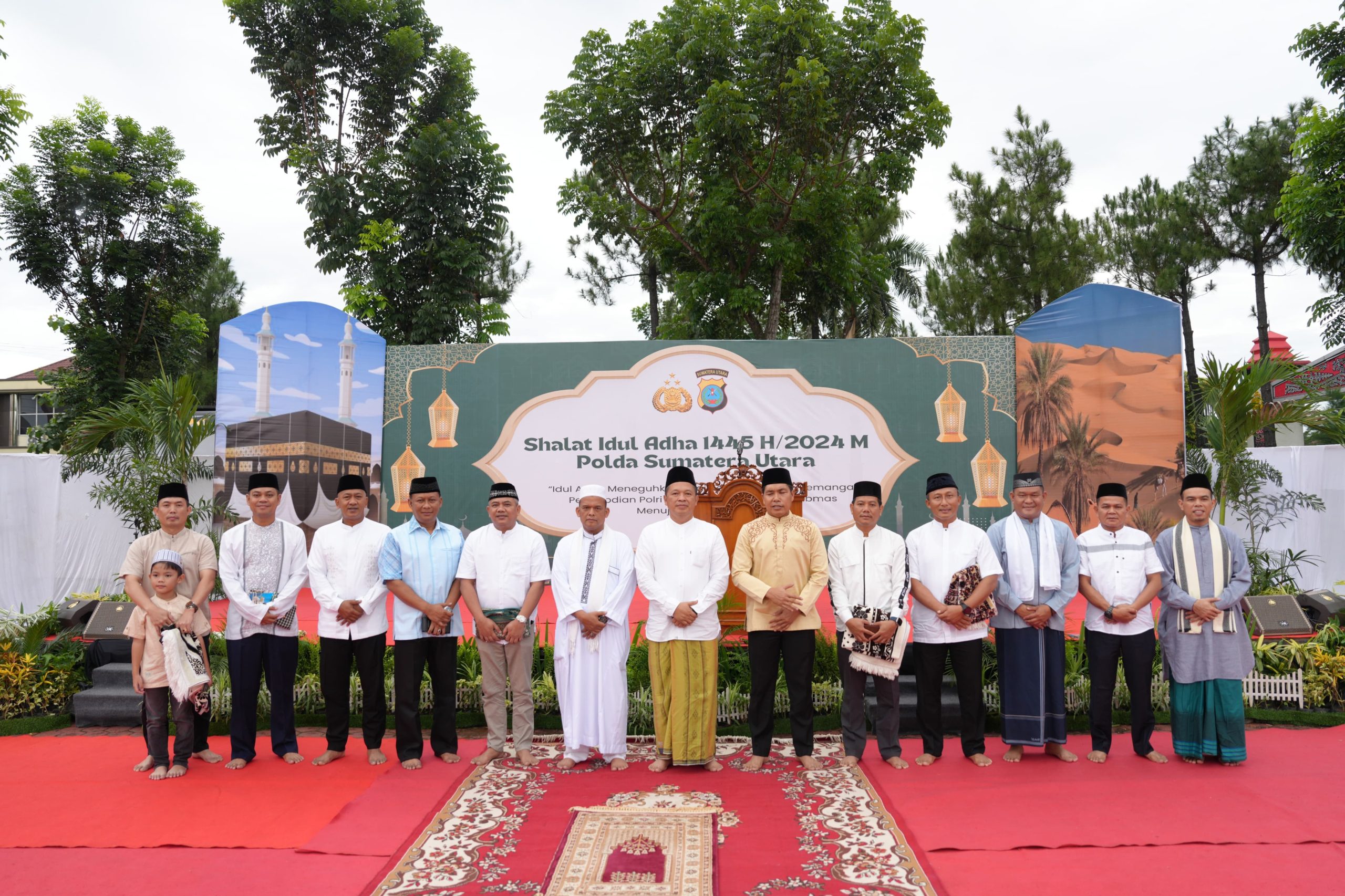Salat Idul Adha yang dilaksanakan dihadiri Kapolda Sumut Irjen Pol Agung Setya Imam Effendi, Wakapolda Sumut Brigjen Pol Rony Samtana, para Pejabat Utama Polda Sumut serta para jamaah lainnya.